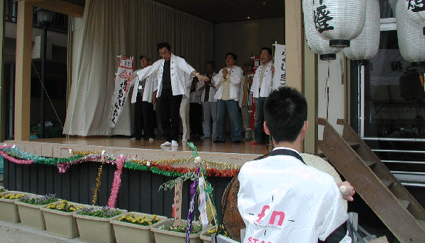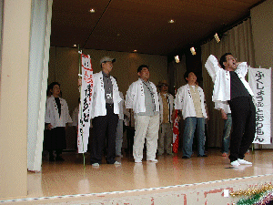 <舞台に飛び入り、校歌せいしょ〜>